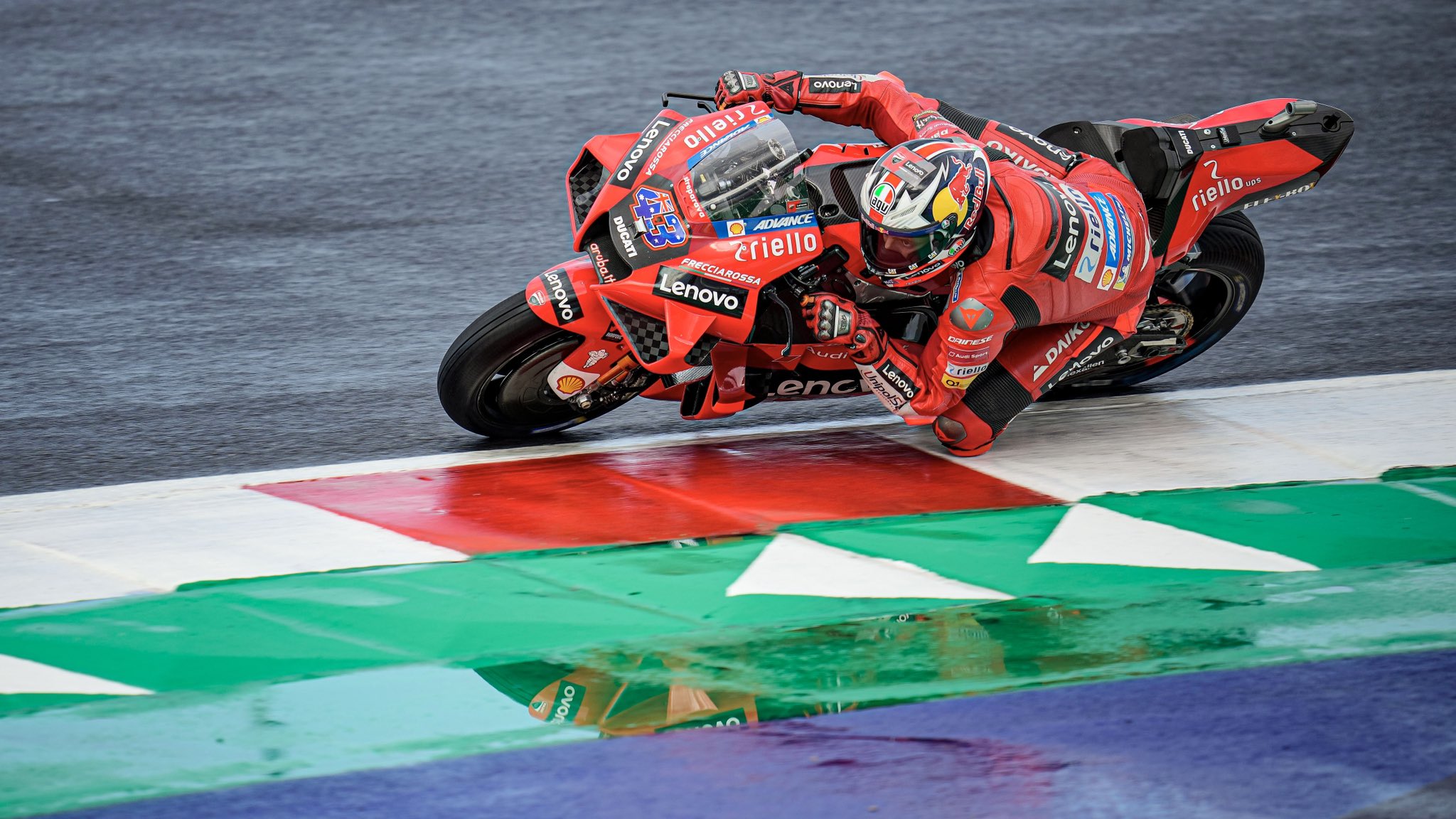 Crediti foto:Twitter @ducaticorseFP2, Gp Misano 2021: Nella pioggia, Jack Miller della Ducati domina la seconda sessione di prove libere. Zarco (Pramac Racing) e Aleix Espargaro (Aprilia Racing Team Gresini) completano la top 3.Jack Miller (Ducati Lenovo Team) conquista la prima posizione nelle libere del Gran Premio del Made in Italy e dell’Emilia-Romagna con un tempo di 1:41.305. Johann Zarco (Pramac Racing) è secondo con più di nove decimi dal leader. Terzo tempo per Aleix Espargaro (Aprilia Racing Team Gresini).Quarto tempo per Lecuona (Tech 3 KTM Factory Racing) a 1.2 secondi dal primo. Solo ottavo per il secondo in campionato Francesco Bagnaia (Ducati Lenovo Team) a 1.3 secondi dal compagno di squadra. Mentre, il leader del mondiale Fabio Quartararo è in sedicesima posizione.